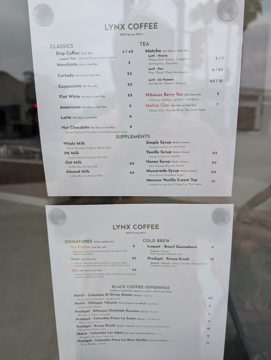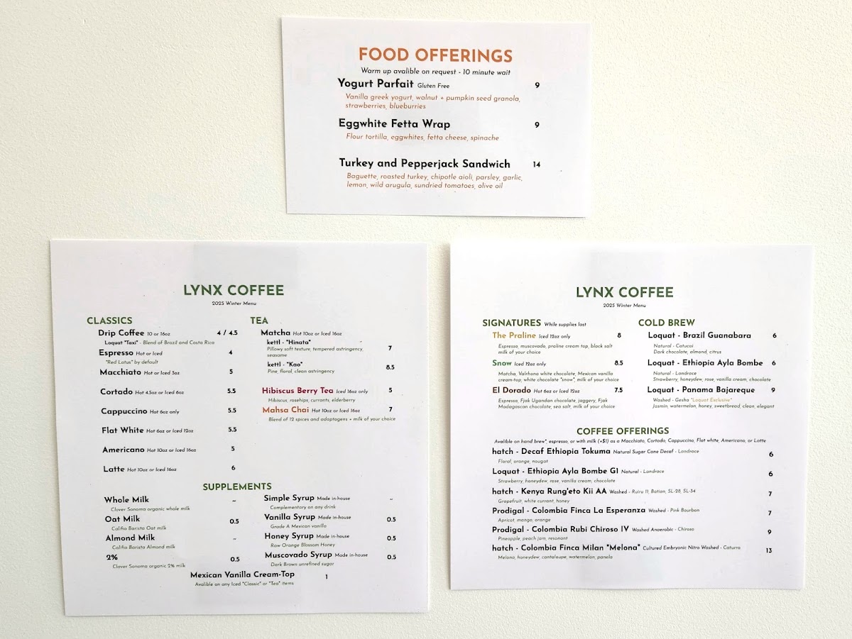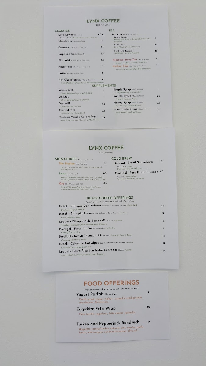 The menu at Lynx Coffee reflects a thoughtful and artful approach to everyday coffee experiences. It offers a balanced selection of carefully roasted black coffees, signature espresso drinks, and customizable options to suit different tastes and moments. Whether you’re starting your day or seeking a midday pause, the menu invites you to enjoy comforting, well-crafted beverages in a relaxed setting.